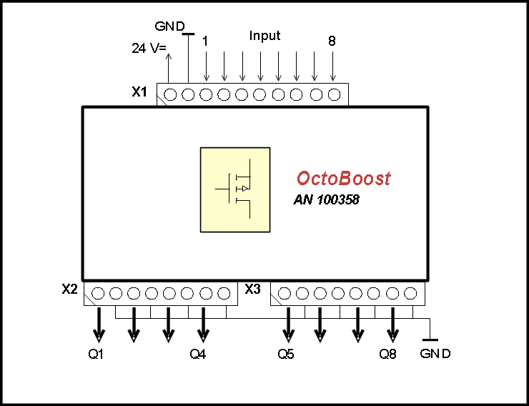 - 24 V Betriebsspannung – 2,5 A Spitzenstrom / Ausgang