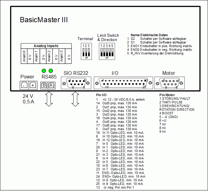 All connections are pluggable, a metal hood protects against interference. Thanks to high-level language intelligence expects the BasicMaster * III * with floating point numbers and can create convenient user dialogs.